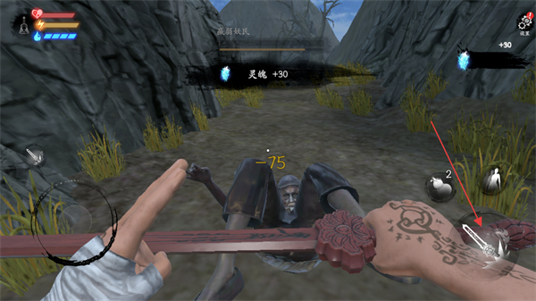 2、攻击怨骨妖魂时,点击界面右侧的攻击按钮发起攻击,同时敌人会扣除对应血量,击倒后可获得灵魄+30奖励。