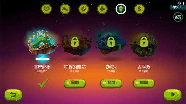 3、在商城的倒数第二页可以购买游戏地图,花费金币进行购买,点击勾选后下次进入游戏就会进入新地图。