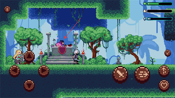 采用经典像素画风打造游戏画面,角色与场景设计充满复古街机质感,通过细节让勇者世界更生动,契合动作闯关的主题氛围。