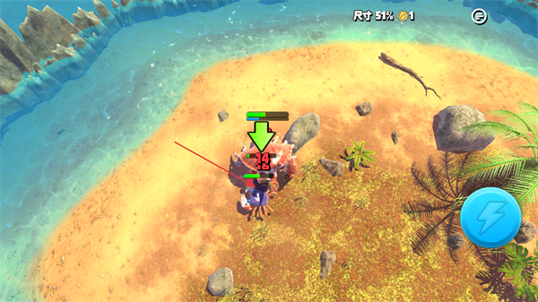 1、通过滑动左侧屏幕控制螃蟹的移动,寻找岛屿上的猎物。