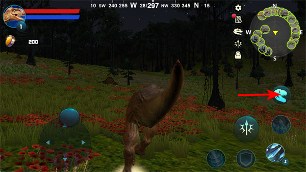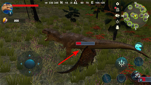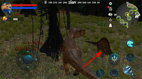 2、操控恐龙靠近其他恐龙,发起攻击或互动,与其他恐龙的互动是游戏探索和成长的重要环节,获取经验或资源。