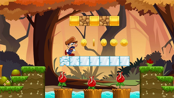 4、在规定时间内,不断前进,收集金币、躲避和消灭敌人,抵达关卡终点。