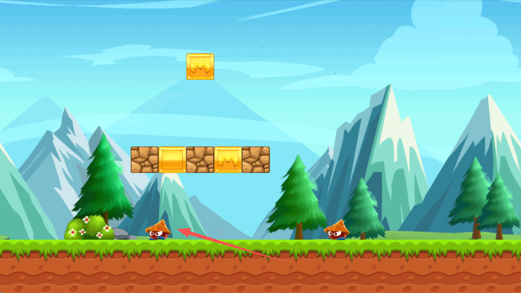 3、控制角色跳跃,顶破带有金币标志的砖块获取金币,增加金币数量。
