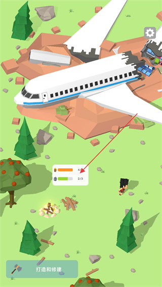 1、在打造和修建界面,消耗资源点击打造按钮,获取斧头工具,用于收集木材。