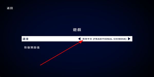 3、语言设置项中选择简体中文,完成语言切换,让游戏界面显示为中文内容。