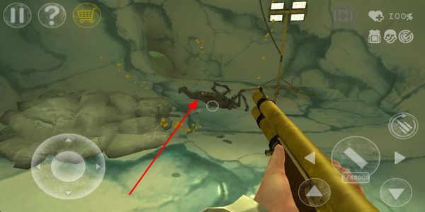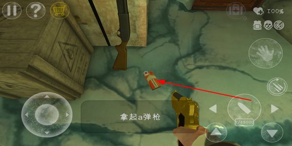 2、场景中找到弹药道具,靠近后可拿起补充,同时能切换武器,通过移动按钮控制角色行动,探索周围区域收集物资。