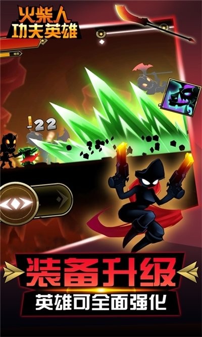 2、个性化装备与角色定制:提供多种装备类型(如增强攻击力的拳套、提升防御的护具)与外观的定制选项,同时调整火柴人英雄的颜色、服饰细节。