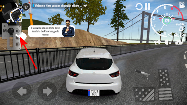 2、进入驾驶场景后,通过右侧的加速按键控制车辆前进,同时留意界面的速度仪表盘,根据路况调整加速节奏,避免车辆失控。