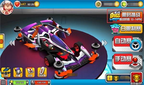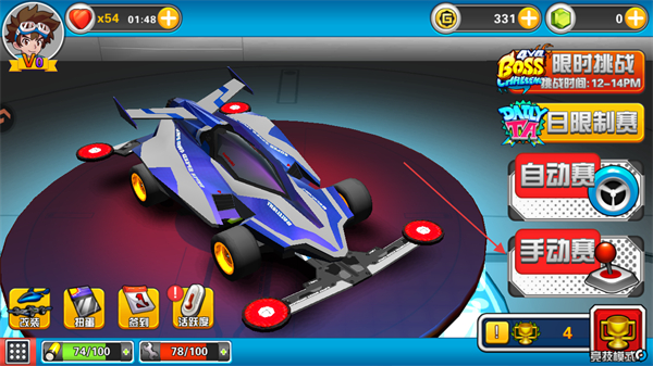 2、改造完赛车后,可以根据自己的喜好来选择自动赛或手动赛进行比赛。