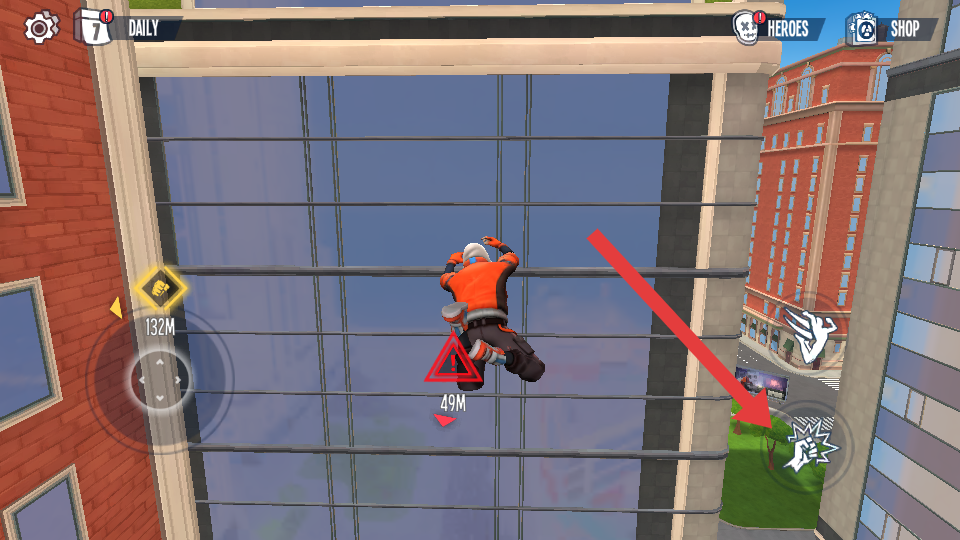 1、进入城市跑酷场景后,先熟悉角色基础操作,点击屏幕左侧控制角色左右移动,右侧跳跃按钮用于跨越街道缝隙。