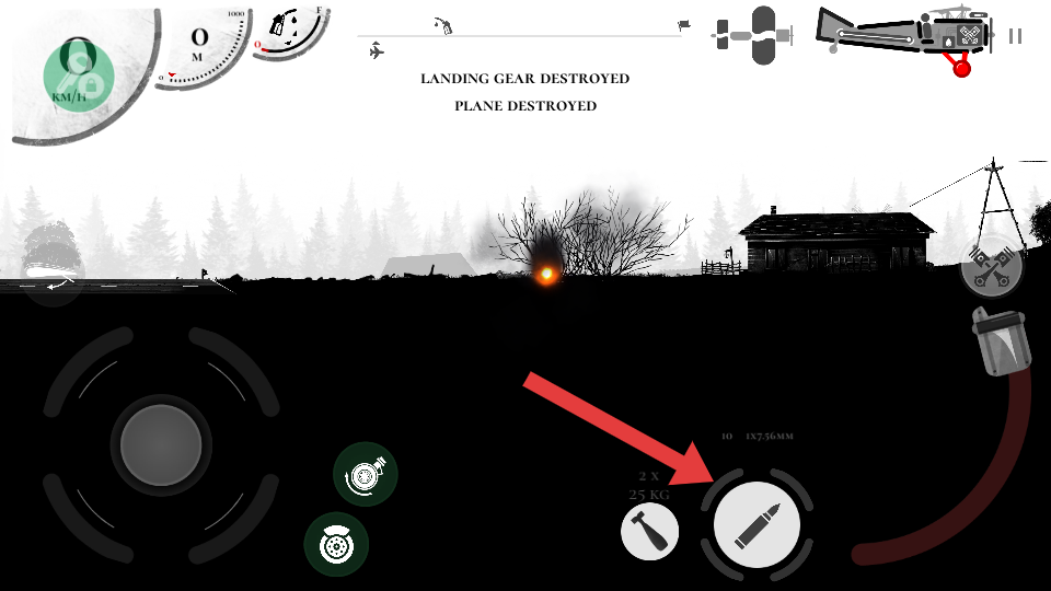 2、当发现敌机时,点击右侧子弹图标,向敌机发起射击,同时通过左侧操控区域灵活调整战机方向,追踪敌机,提高射击命中率。