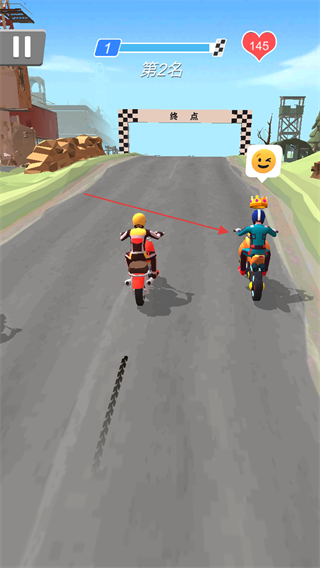 1、操控摩托靠近前方对手,按提示发起攻击,提升排名从第4名向前进阶。