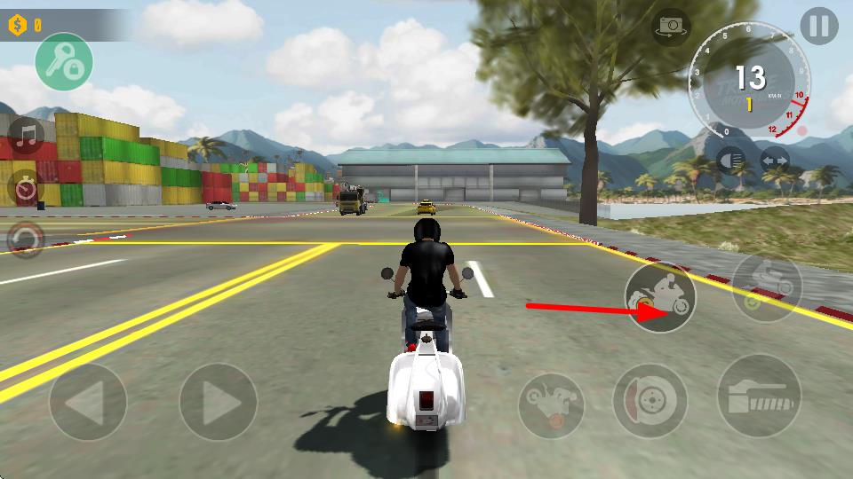 1、点击右侧箭头指向的油门按键,可提升摩托车行驶速度,助力在赛道上快速前进,把控速度以适应路况。