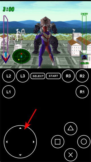 2、游戏中操控左侧方向键,可控制奥特曼角色向对应方向移动,调整战斗站位。