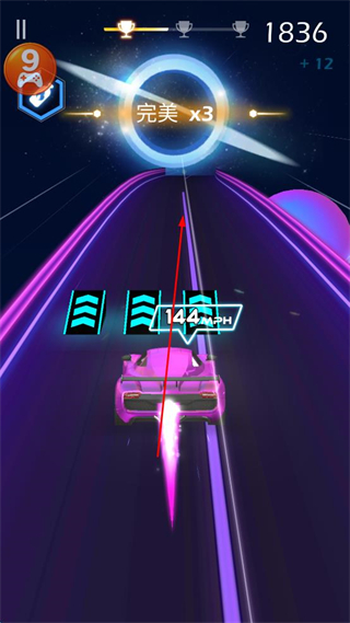 2、在赛道中按节奏完成操作,达成“完美”判定积累分数提升速度。