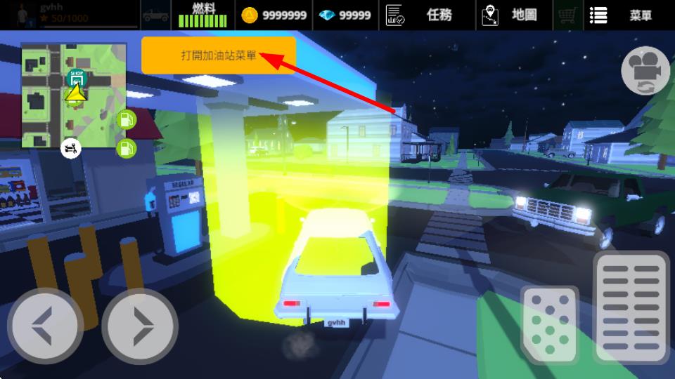 1、在加油站区域,点击打开加油站菜单可进行加油操作,补充车辆燃料,有足够能源继续行驶。