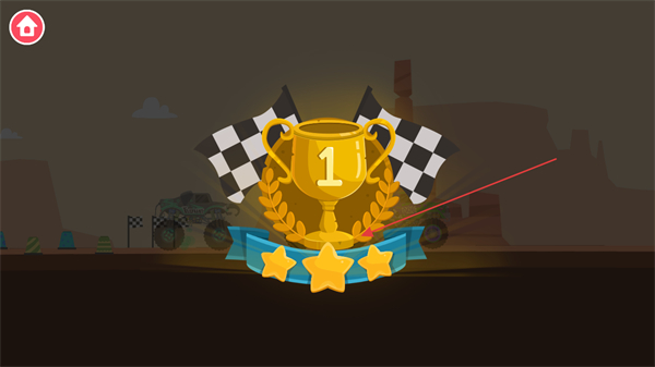2、进入到游戏关卡内的场景,点击屏幕操控大脚车在地形中移动,收集界面中的星星道具,星星是获取关卡奖励的关键元素之一。