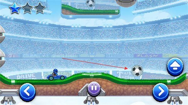 3、持续操控赛车推动足球,躲避障碍物,朝着球门方向前进。