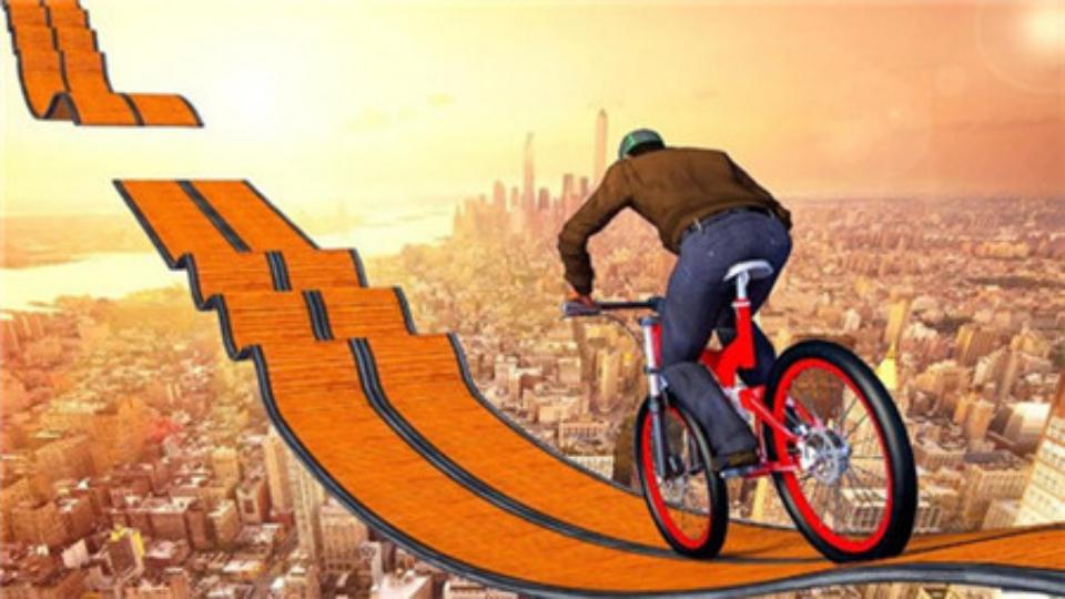 4、朝着带有特殊障碍物的赛道区域前进时,集中精力精准操控自行车,通过该区域,完成关卡任务。