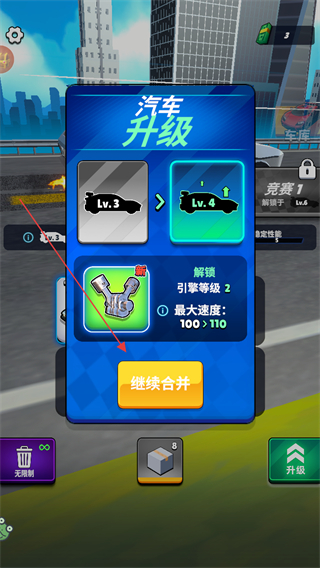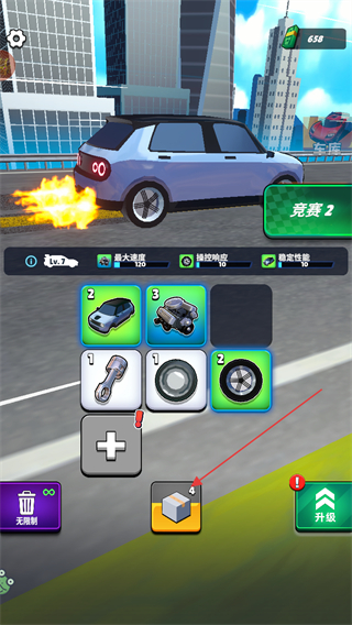 4、使用合成的高级零件升级车辆性能,提高比赛获胜概率。
