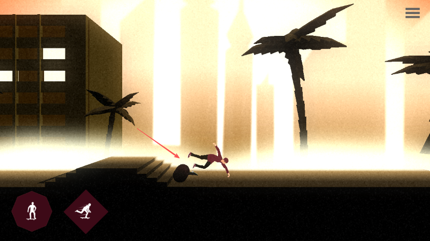 2、画面左下角有两个操作按钮,左边的按钮用于控制角色站立或进行基础动作,右边的按钮用于做出滑行特技动作。