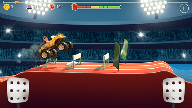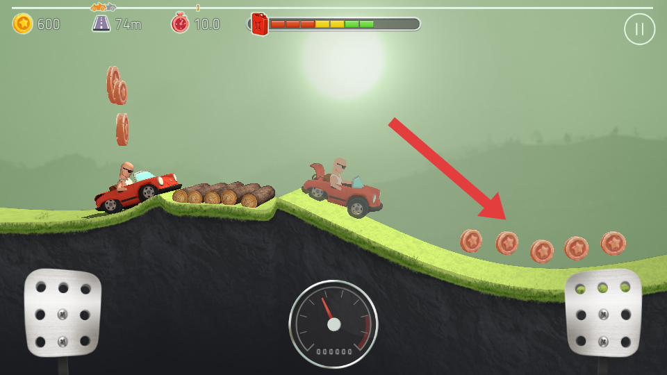 2、核心竞速操作:通过左右两侧操控按钮控制车辆转向与行进,根据山路弯道、坡度等地形变化调整操作节奏,避开障碍、保持车速,全力向山顶冲刺。