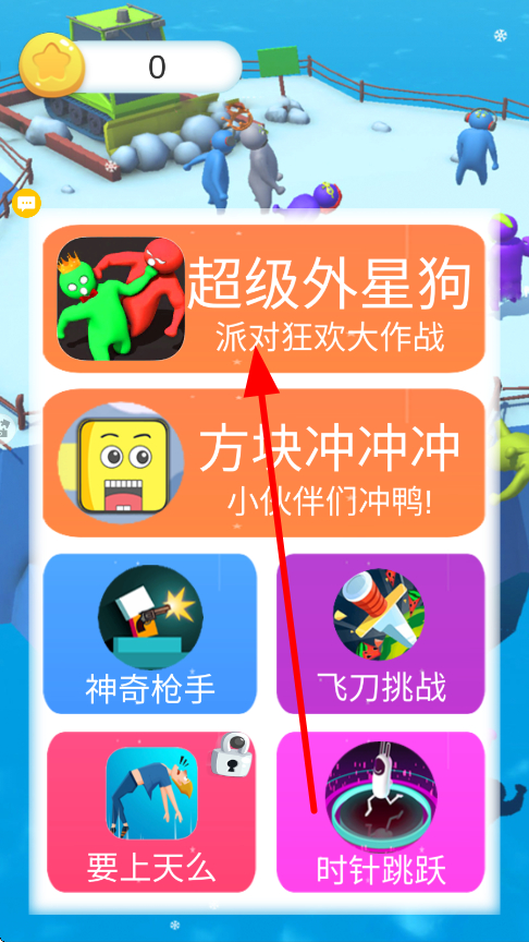 1、开局在玩法选择,有超级外星狗等很多种玩法,点击心仪的超级外星狗派对狂欢大作战,进入对应的游戏场景,开启竞技之旅。