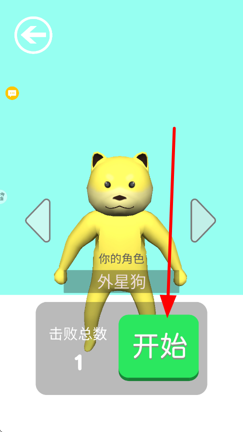 2、进入后,能看到可供选择的造型角色,挑选自己喜欢的外星狗造型角色,确认后点击开始,正式进入赛道,准备参与互动竞技。