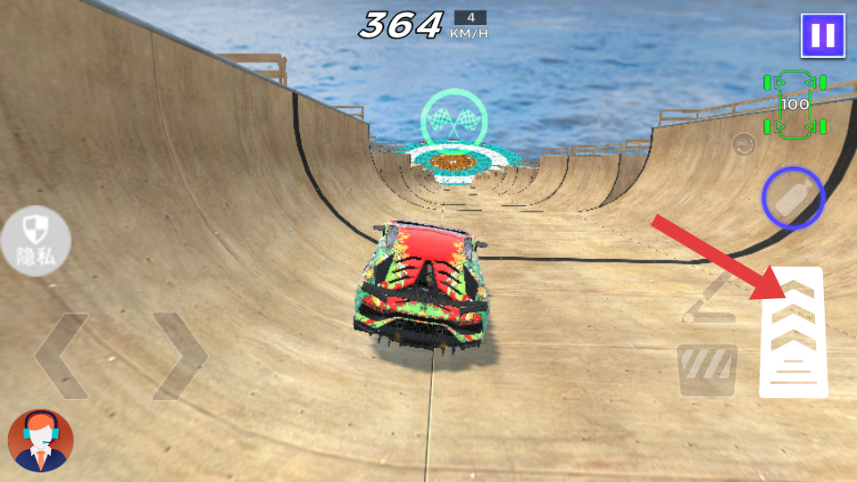 3、通过左侧方向键控制车辆的左右转向,躲避障碍物、适应弯道;右侧加速键控制车辆加速,提升行驶速度。