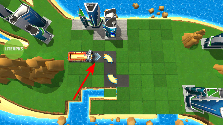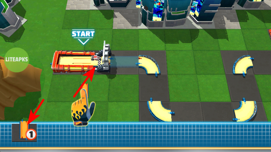 4、进入关卡场景后,观察当前车辆的位置与场景内的轨道组件,操控车辆向轨道组件的方向移动,以搭建完整的行进路线。