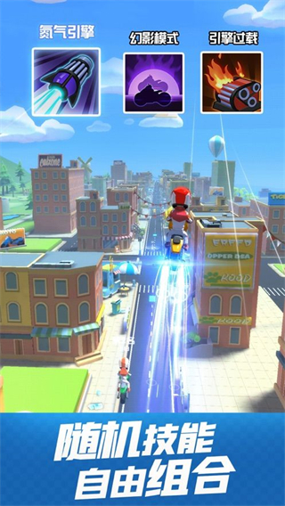 竞速过程中可随机拾取各类道具装备,不同道具分别具备加速、防御、干扰对手等实用功能,合理把握时机能有效抢占竞速优势,更快冲向终点。