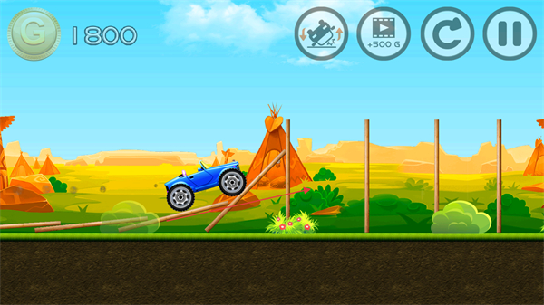 2、驾驶赛车越过木杆搭建的坡道,保持赛车平衡,避免翻车。