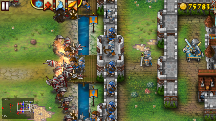 2、操控骑士等战斗单位,抵御敌人进攻,与敌人展开战斗,保护城堡免受侵害。