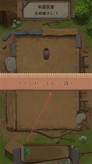 1、明确关卡目标为击碎1个罐子,观察罐子位置。