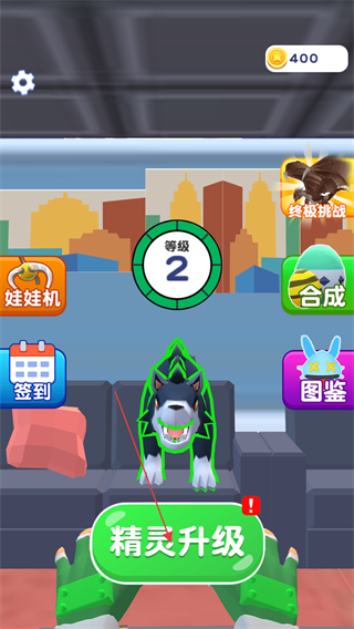 4、在家园主页内,可以点击下方精灵升级按钮,为精灵进行训练和吃糖果升级。