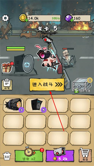 1、在关卡界面点击进入战斗,进入末世战场,对战更多僵尸。