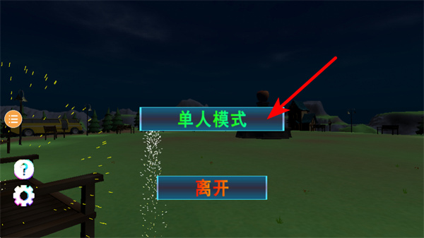 2、在模式选择界面中,点击红色箭头指向的单人模式按钮,进入单人游玩的场景,开启游戏的核心玩法流程。