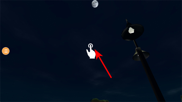 3、进入场景后,点击红色箭头指向的手掌交互按钮,与红色烟花道具进行互动,拾取该道具,为后续的烟花玩法做准备。