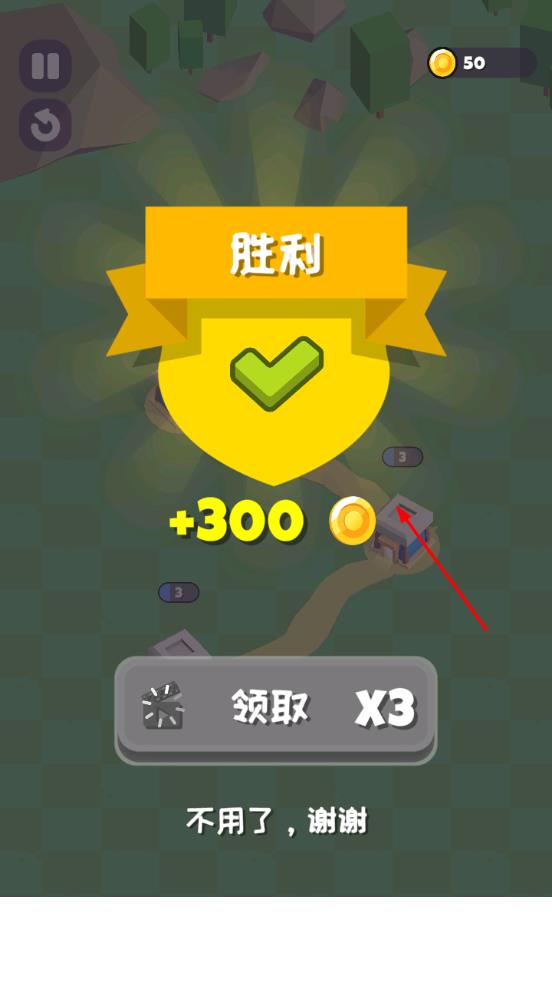 3、成功获胜后,会显示胜利,并获得金币奖励,可选择领取或不用了,谢谢。