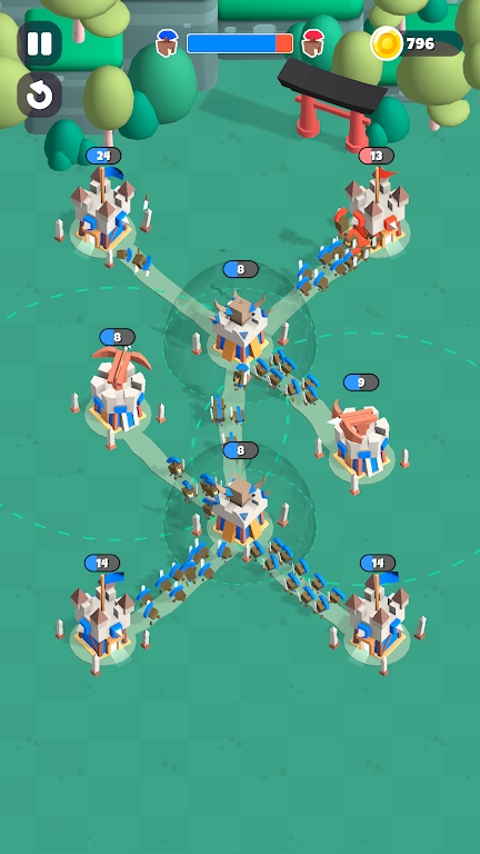 3、策略优先对战逻辑:取胜关键并非最强军力,而是高效的策略与扎实的逻辑技巧,派遣士兵、规划进攻路线、把握作战时机等决策直接影响战局,凸显策略玩法的核心地位。