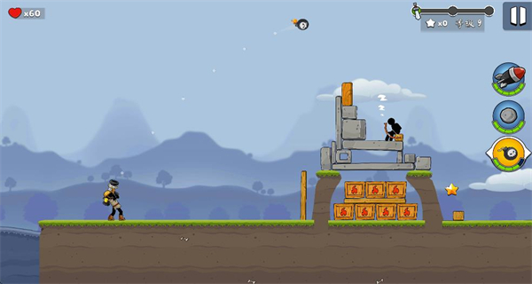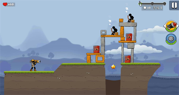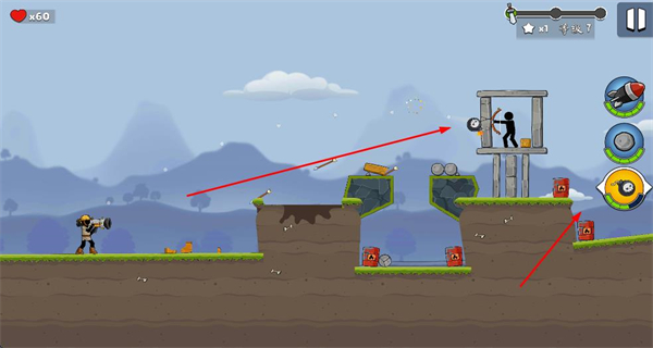 3、关卡中操控火柴人使用武器瞄准敌方目标,结合场景中的爆炸物,提升破坏效率以快速通关。