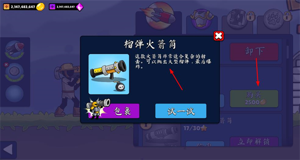 1、在武器界面,查看新武器的介绍,可选择试一试体验效果,或通过包裹管理已拥有武器。