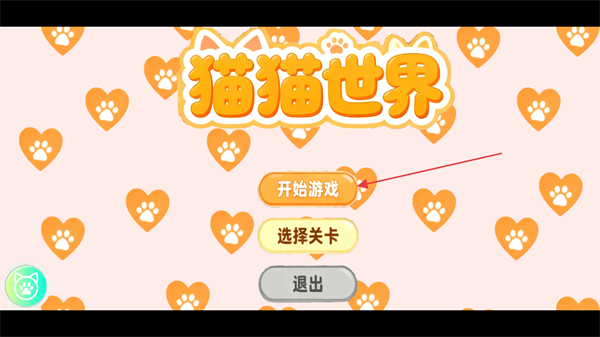 1、点击开始游戏按钮,进入猫猫世界的游戏关卡,开启游戏进程。