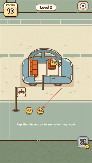 2、进入Level2关卡后,依据游戏中的提示,点击下方的角色,查看其对应的需求,这是推进关卡的核心操作步骤。