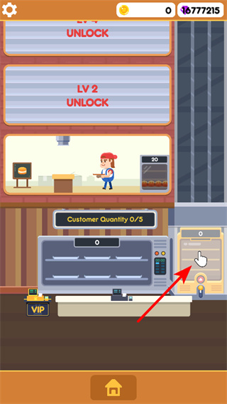 1、游戏中点击绿色解锁按钮,可制作区域,这是扩展餐厅经营的关键操作,解锁时需关注金币消耗和区域功能。