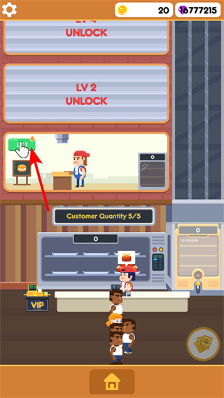 4、点击制作区域的升级按钮,可提升食物制作效率,这是提升餐厅收益的关键策略,顾客数量设备产能进行规划。