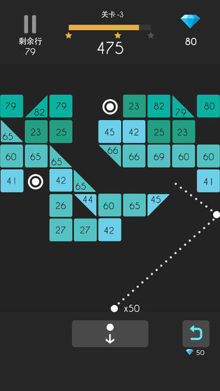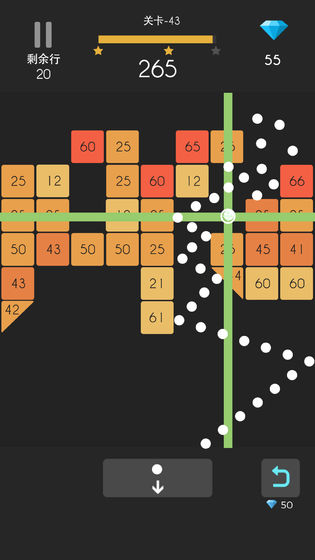 3、游戏过程中,要留意方块位置,避免方块触碰到地面,否则游戏失败,需合理规划每一次发射。