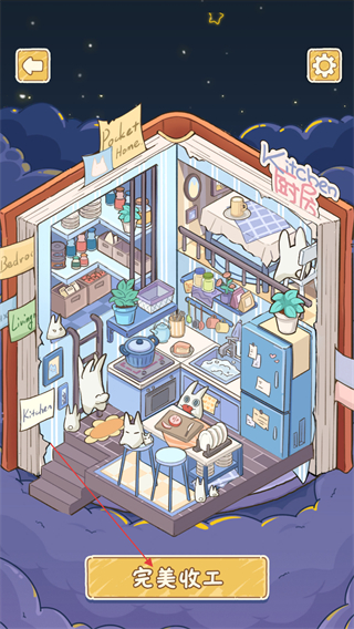 4、完成全部家具的布置后,可以点击下方的完美收工按钮开启下一个场景。