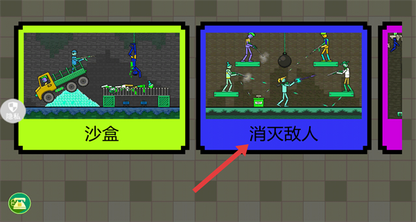 2、在模式选择界面,选择消灭敌人模式,进入战斗关卡。