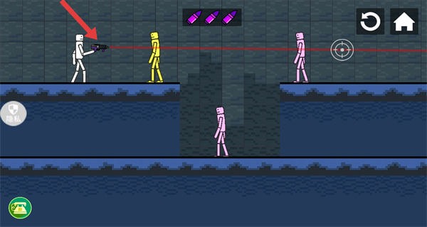 4、通过调整射击角度,利用弹道反弹机制命中敌人,完成关卡内所有敌人的消灭任务。
